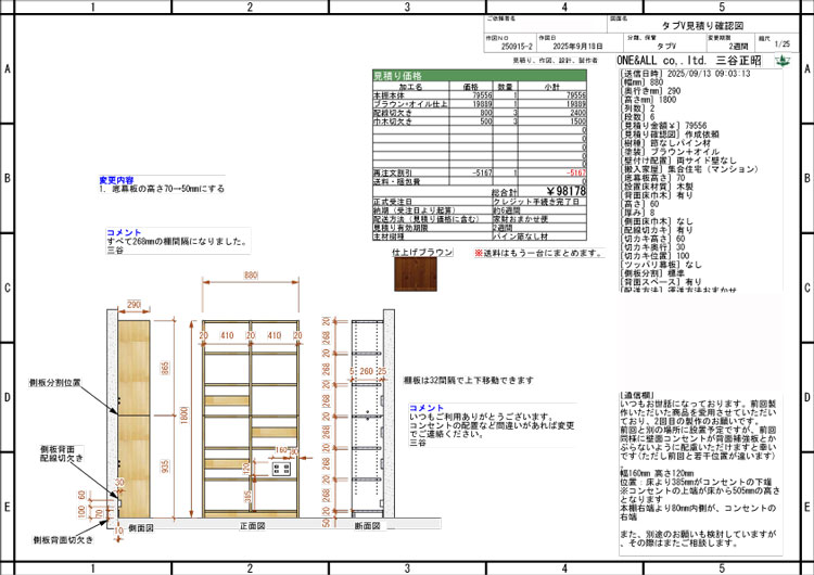 神奈川県 サイズW880×D290×H1800mm パイン節なし集成材 ブラウン+オイル仕上げ