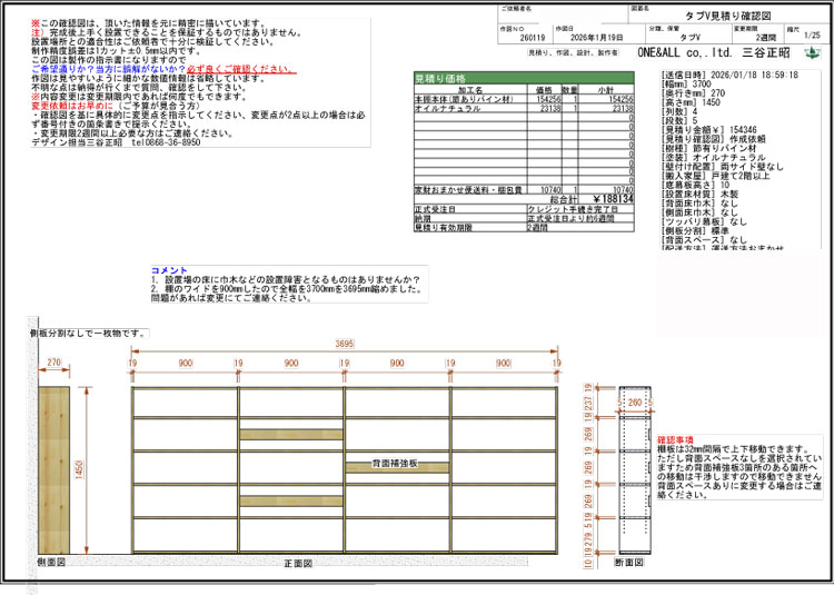 兵庫県 サイズW3695×D270×H1450mm パイン節あり集成材 オイル仕上げ