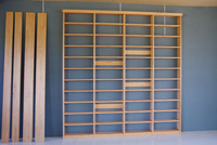 棚板配置の自由度が格段に良くなりました。 これまでは底板・天板・固定棚で強度作って可動棚を配置していました。「タブV」では棚板は固定棚と可動棚の要素を持ったハイブリッド棚で壁面本棚の可能性を大きく前進させました。 外寸サイズと縦の列数、横の段数の入力で簡単見積り。 ぜひ、お試しください。