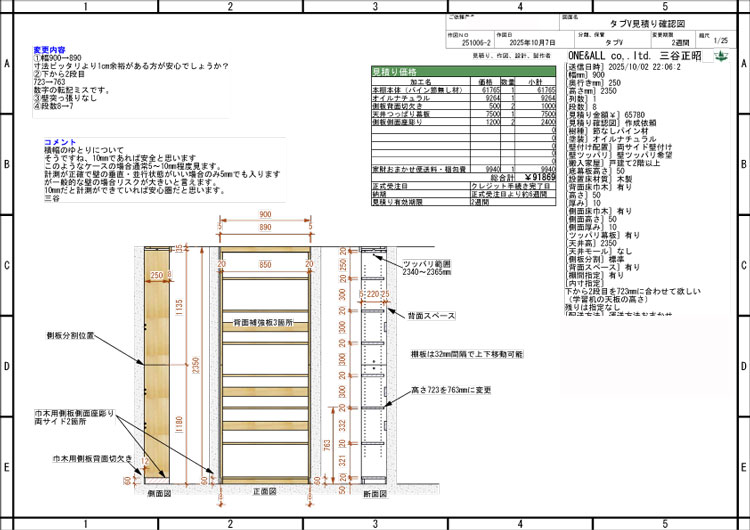 愛知県 サイズW890×D270×H2350mm パイン節なし集成材 オイル仕上げ