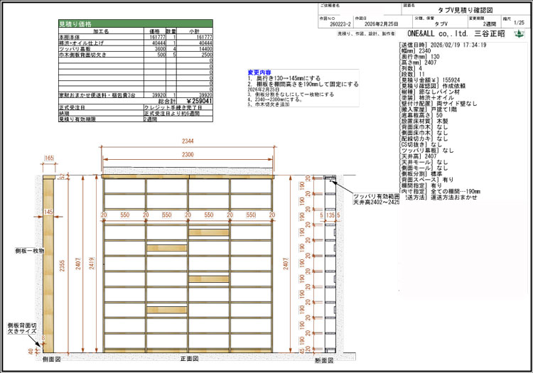 鹿児島県 サイズW2344×D165×H2407~2419mm パイン節なし集成材 柿渋+オイル仕上げ